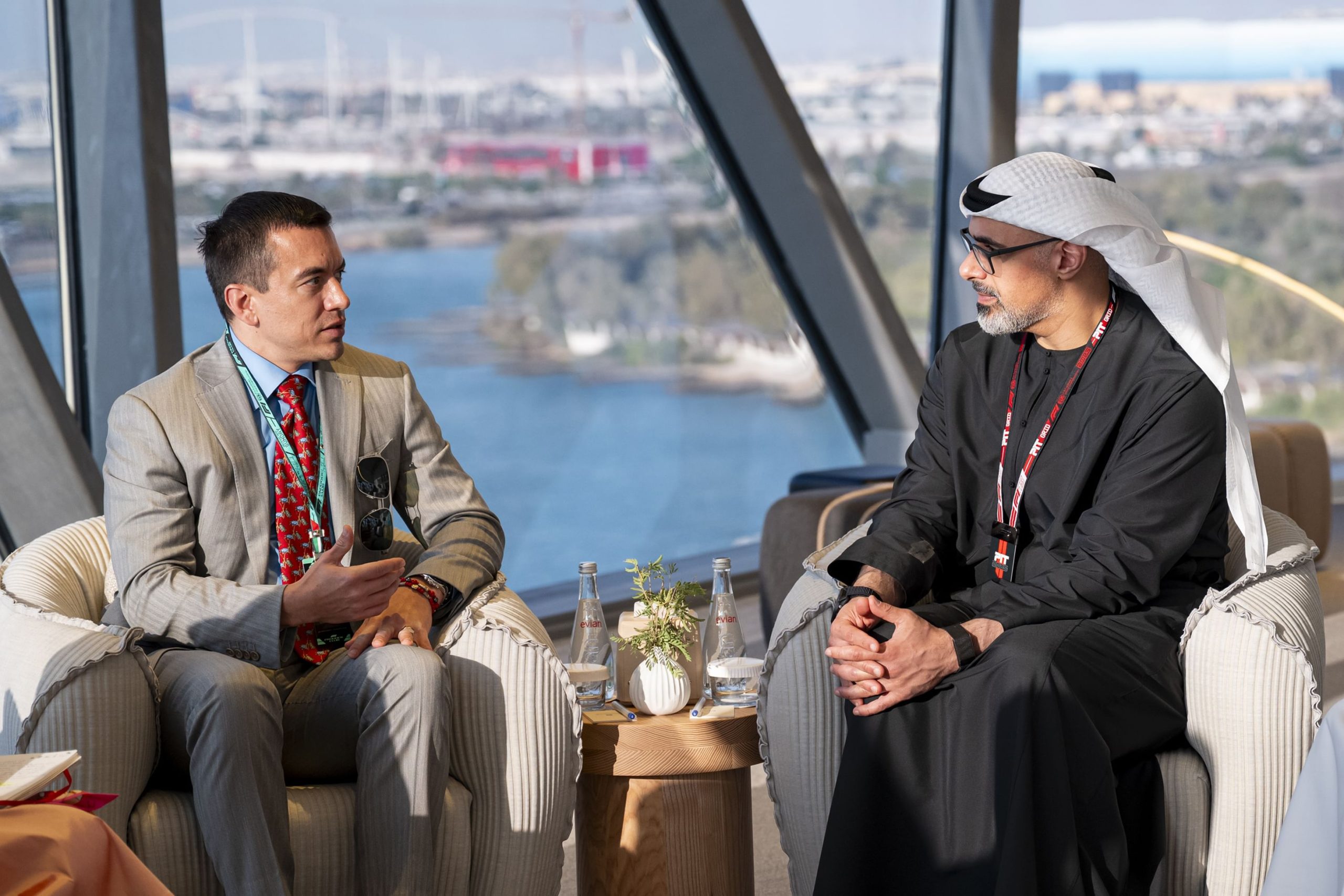 حضر اللقاء الشيخ خليفة بن طحنون بن محمد آل نهيان، رئيس ديوان ولي عهد أبوظبي، ووزيرة دولة لشؤون التعاون الدولي، ريم بنت إبراهيم الهاشمي، و وزير دولة للذكاء الاصطناعي والاقتصاد الرقمي وتطبيقات العمل عن بُعد عمر سلطان العلماء، والأمين العام للمجلس التنفيذي لإمارة أبوظبي، رئيس مكتب ولي العهد في ديوان ولي عهد أبوظبي سيف سعيد غباش، ورئيس مكتب أبوظبي الإعلامي، مستشار العلاقات الاستراتيجية في ديوان ولي العهد، مريم عيد المهيري، وسفير فوق العادة ومفوض غير مقيم لدولة الإمارات لدى جمهورية الإكوادور  إبراهيم سالم العلوي.