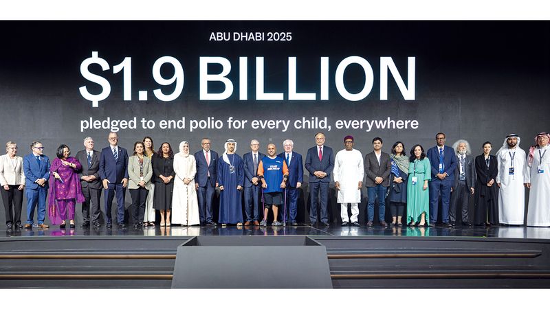 شهدت أبوظبي، أمس، فعالية رفيعة المستوى، جمعت قيادات دولية ومساهمين بارزين عالميين في قطاع الرعاية الصحية، أعلنوا خلالها عن تعهّد جماعي بقيمة 1.9 مليار دولار أميركي لدعم الجهود العالمية الهادفة إلى القضاء على شلل الأطفال.