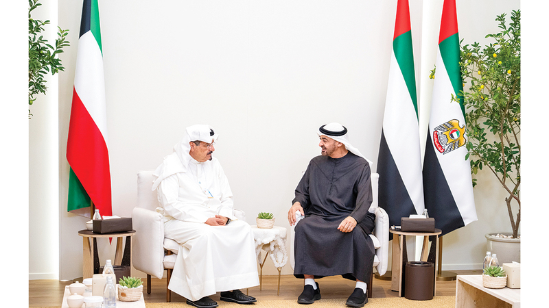 ونقل سمو رئيس الوزراء الكويتي إلى صاحب السمو رئيس الدولة تحيات أخيه صاحب السمو الشيخ مشعل الأحمد الجابر الصباح، أمير دولة الكويت الشقيقة، وتمنياته للإمارات وشعبها دوام التنمية والازدهار، فيما رحب سموه به في بلده الثاني وحمّله عميق تحياته إلى صاحب السمو الشيخ مشعل الأحمد الجابر الصباح وتهانيه بمناسبة احتفاء الكويت بأيامها الوطنية، وتمنياته له موفور الصحة والعافية وللكويت وشعبها دوام التقدم والنماء.