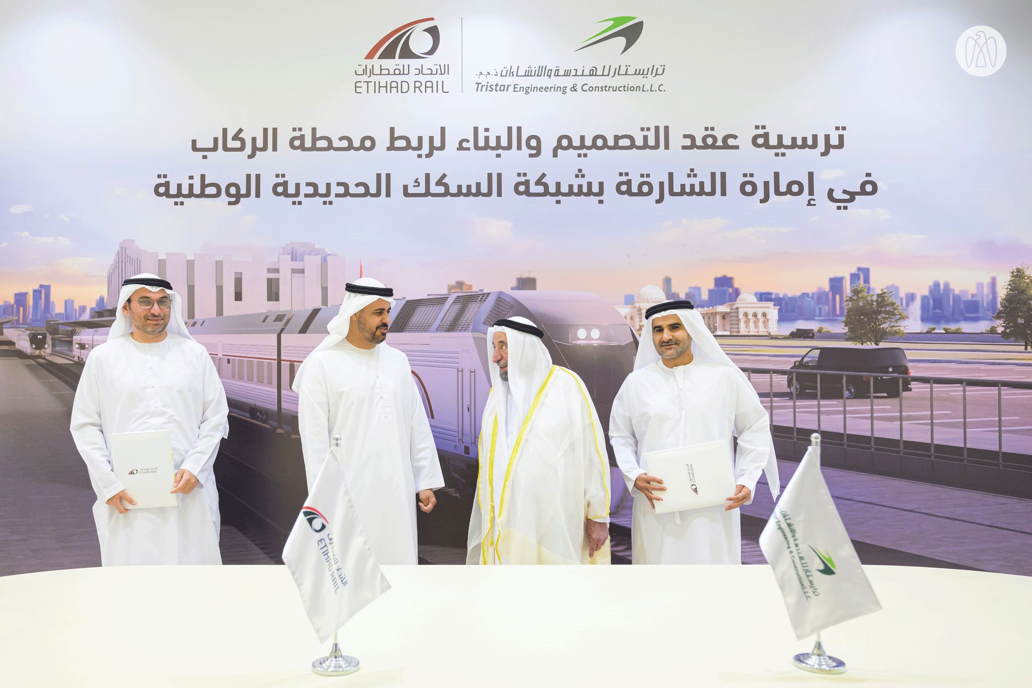وتخلل مراسم الإعلان عن الربط توقيع اتفاقية تعاقد مع شركة ترايستار للهندسة والإنشاءات، لمنحها عقد التصميم والبناء لربط مسار الشبكة بمحطة الركاب في الشارقة. ووقع الاتفاقية شادي ملك، الرئيس التنفيذي لشركة الاتحاد للقطارات، وناجي الحارثي رئيس مجلس إدارة شركة ترايستار للهندسة والإنشاءات، بحضور عدد من المسؤولين من الجانبين.