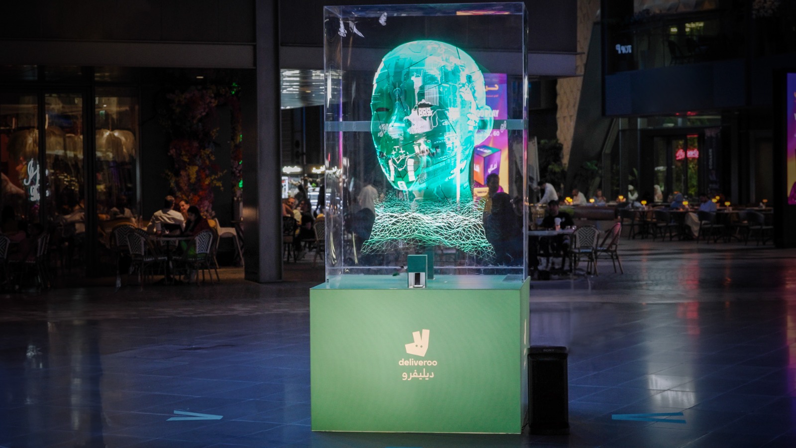 وتضمنت التجربة عرضاً بتقنية الهولوجرام لمجسم تم تصميمه خصيصاً لجذب انتباه المارة في سيتي ووك دبي وتشجيعهم على التفاعل معه، حيث لاحظوا وجود قطعة نقدية من فئة 50 فلس، فيكون لديهم الخيار إما بأخذها أو التبرع بها. ويتم بعدها تقديم شرح للمارة عن ميزة التبرع بأجزاء الدرهم المتوفرة على تطبيق ديليفرو، مع تسليط الضوء على إمكانية تقديم العون للمجتمعات المحتاجة بكل بساطة وسهولة.