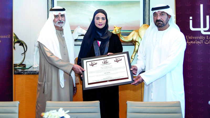 جاء ذلك عقب تكريم الشيخ نهيان بن مبارك آل نهيان، لنائب رئيس الموارد البشرية للتدريب والكفاءات في مجموعة الإمارات، أميرة الفلاسي، بجائزة مجلس القيادات الجامعية (بنيان) الشابة الرائدة في المجال القيادي، ومنحها شهادة تقدير، نظير إسهاماتها في تنمية المواهب وتعزيزها، ودعم بناء القدرات، إضافة إلى كونها قدوة ملهمة للقادة الشباب في دولة الإمارات من خلال مشاركتها الاجتماعية النشطة.