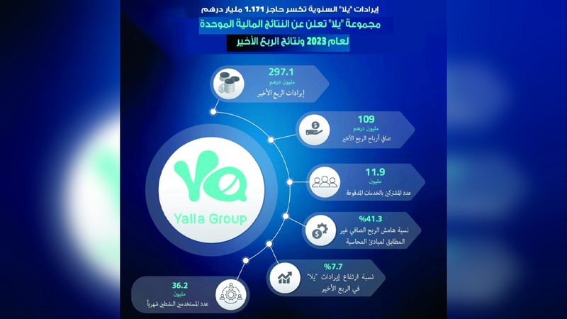 سجلت مجموعة «يلا» إيرادات بلغت 1.17 مليار درهم في عام 2023 وفقاً للنتائج المالية الصادرة عن المجموعة أمس.