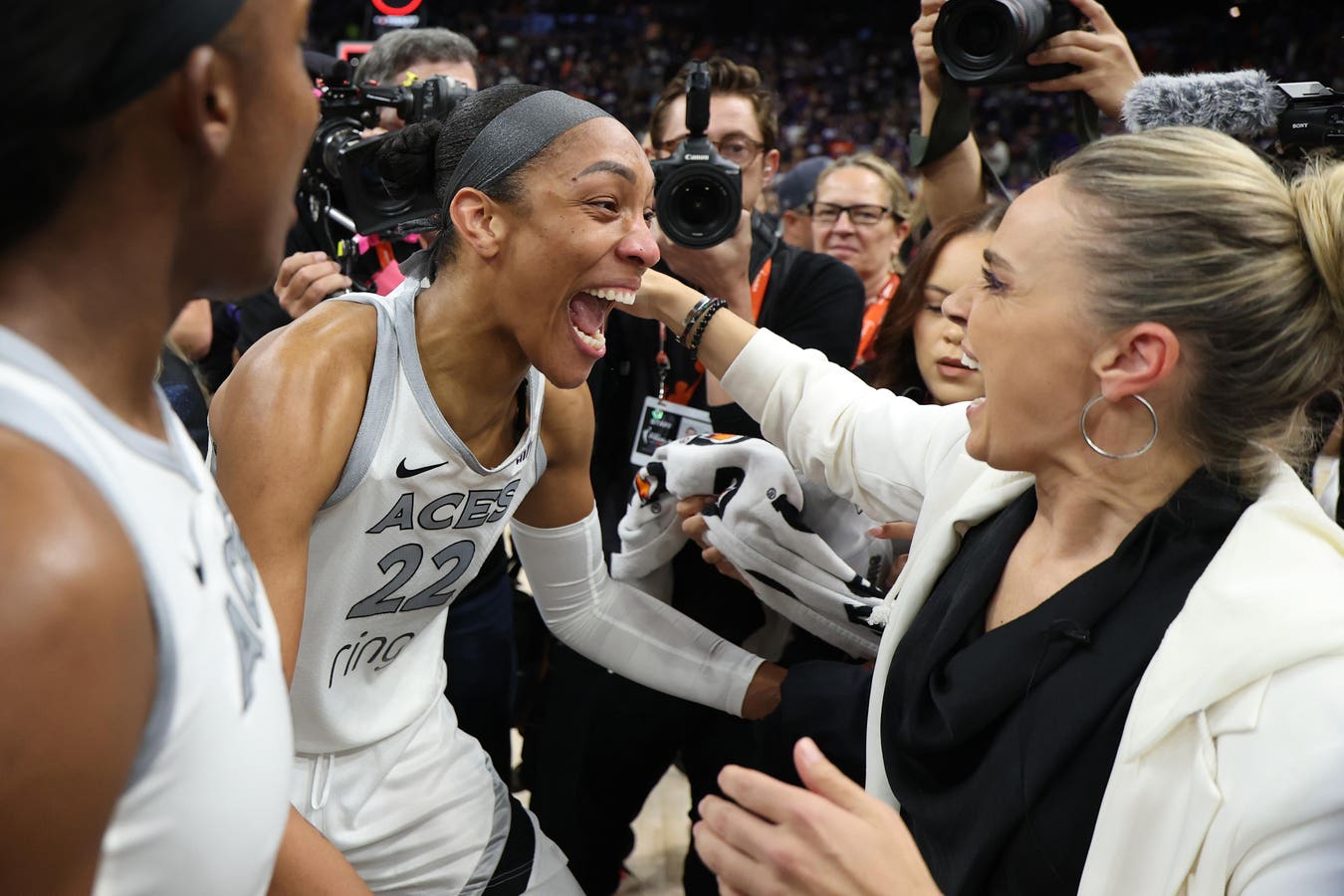 توجت سلالة جديدة عندما فاز فريق Las Vegas Aces ببطولة WNBA الثالثة للامتياز في أربع سنوات بعد فوزه على Phoenix Mercury 97-86 في اللعبة 4 من أول سلسلة نهائيات WNBA الأفضل من بين سبعة على الإطلاق في Mortgage Matchup Center، في فينيكس.