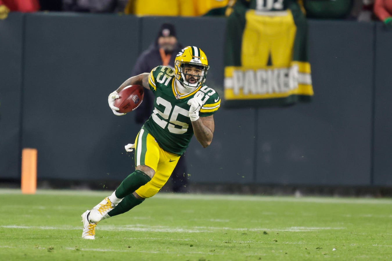 وقال مات لافلور مدرب غرين باي: “يرجع الفضل في ذلك ، لقد أظهر الكثير من التنوع ، كما تعلمون ، من حيث كيف استخدمناه في الماضي … تحوله من الداخل إلى الخارج”. “وأعتقد أنه فعل الكثير من الأشياء الرائعة في العام الماضي ، ويلعب بشكل أساسي في الخارج.”