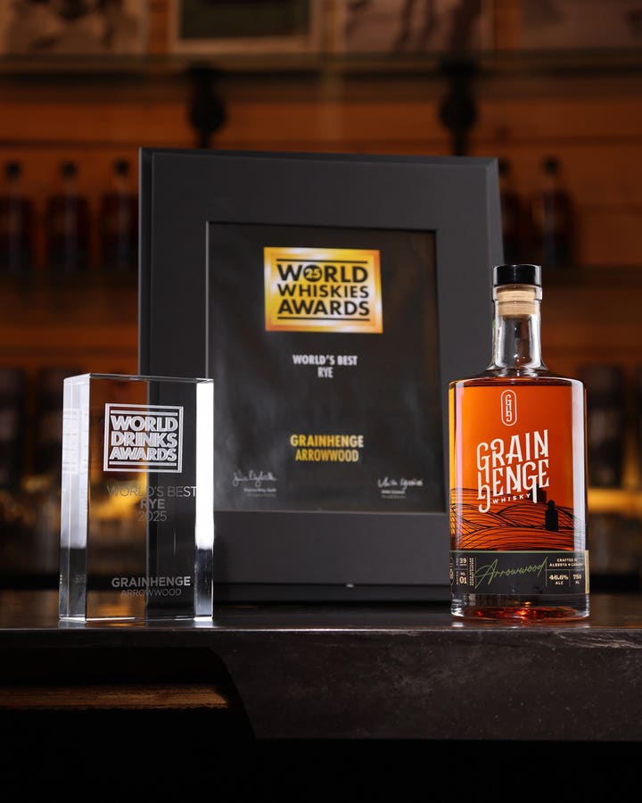 حصل GrainHenge Arrowwood على جائزة أفضل أنواع الجاودار في حفل توزيع جوائز الويسكي العالمية لعام 2025. تُسمي جوائز الويسكي العالمية أفضل أنواع الجاودار من كل دولة، ثم يتم الحكم على الفائزين في كل دولة ضد بعضهم البعض. أفضل هؤلاء حصل على لقب أفضل الجاودار في العالم. كان GrainHenge هو أفضل الجاودار الكندي، واستمر في التغلب على ويسكي الجاودار من الولايات المتحدة وأيرلندا وأستراليا والدنمارك وهولندا وإنجلترا وفرنسا وألمانيا واسكتلندا وإسبانيا والسويد ليحصل على اللقب الأول.