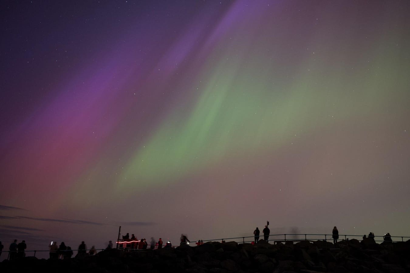إذا استمرت توقعات الإدارة الوطنية للمحيطات والغلاف الجوي (NOAA)، فقد يجلب يوم الخميس فرصة أكبر لرؤية الأضواء الشمالية حيث تم إصدار مؤشر Kp من سبعة مساء الغد، مما يعني أن الشفق القطبي “سيصبح مشرقًا ونشطًا للغاية”، وفقًا للإدارة الوطنية للمحيطات والغلاف الجوي (NOAA).