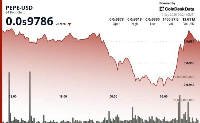 بيبي يتفوق على سوق ميموين الأوسع. كما تم قياسه بواسطة مؤشر Coindesk Memecoin (CDMEME) ، فقد القطاع ما يقرب من 3 ٪ من قيمته على مدار الـ 24 ساعة الماضية ، أكثر من انخفاض Pepe 1 ٪.