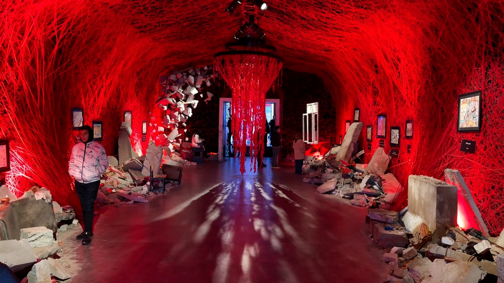 ويهدف المعرض، المستمر حتى 29 يناير/كانون الثاني الجاري، إلى رفع مستوى الوعي في المجتمع الدولي من خلال الفن، ونقل مشاعر وصدمات وآلام وظروف الأطفال الصعبة الذين يعيشون ويختبرون العدوان على غزة.