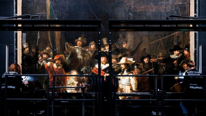 تقول إستير فان دوين، وهي واحدة من ثمانية من القائمين على الترميم الذين يقومون بترميم تحفة رامبرانت التي يرجع تاريخها إلى عام 1642 بعنوان “المراقبة الليلية” في غرفة زجاجية في متحف ريجكس بأمستردام، أمام أعين الجمهور: “أشعر أحيانًا وكأنني قرد في حديقة حيوانات”. “أنا قلق في الغالب من أنني سأسقط مشرطي وسيرى الجميع.”