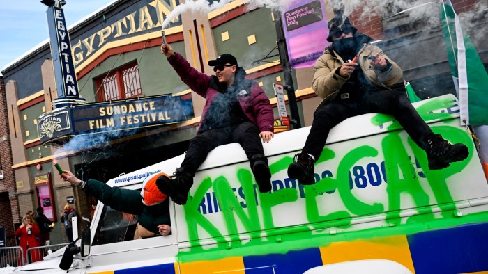 نشر Kneecap – نجوم الفيلم الحائز على جائزة والذي تم اختياره ليكون مدخل أيرلندا لجوائز الأوسكار – على منصة التواصل الاجتماعي X: “نحن في محاكم العدل “الملكية” في بلفاست هنا لسرقة بعض أموال الملوك (نأمل أن ).”