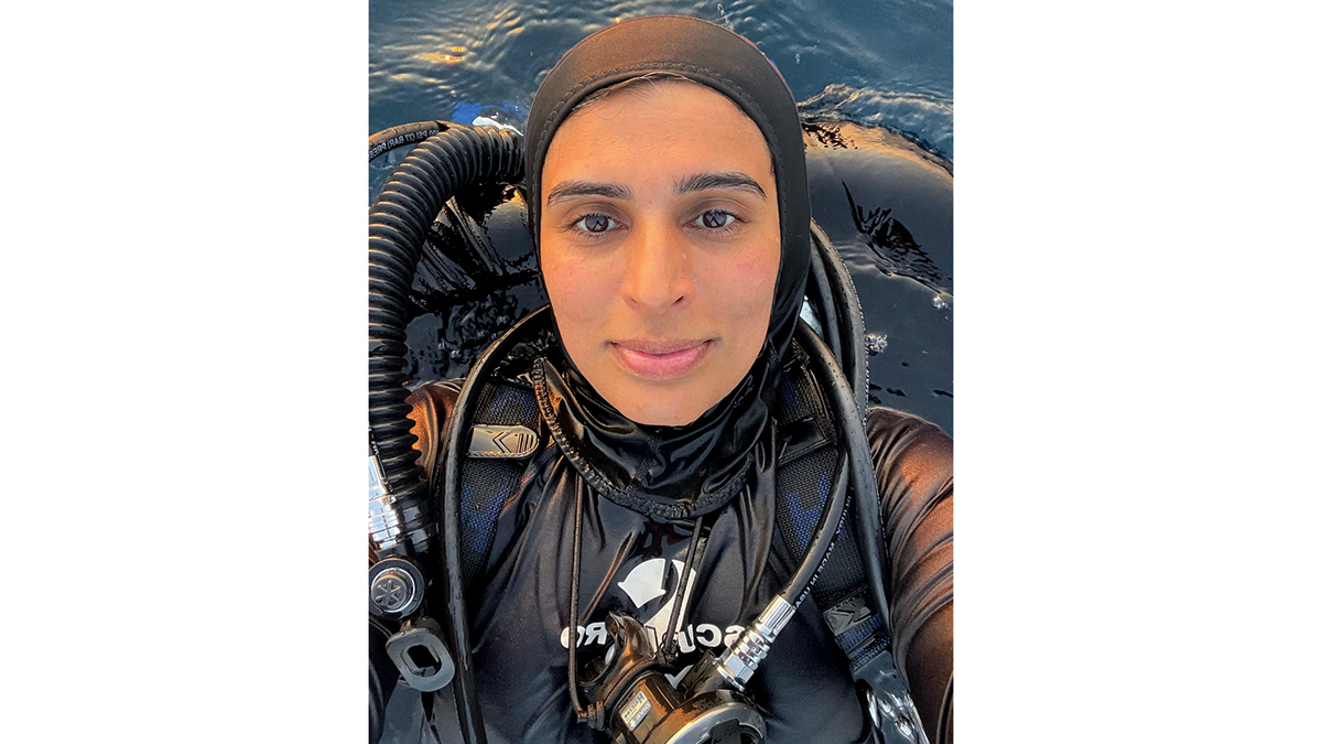 لم تكن الكابتن حمدة المنصوري تتخيل أن جائحة «كورونا» ستغيّر مسار حياتها، وتنقلها من روتين العمل إلى عالم البحر المليء بالمغامرة والخطر والجمال، ففي وقت تبحث كثيرات من النساء عن هواية تميزهن، اختارت ابنة الإمارات طريقاً صعباً مختلفاً تماماً، يبدأ من سطح البحر وينتهي في أعماق تتجاوز الـ100 متر، لتصبح أول إماراتية تمارس الغوص التقني العميق، وذلك، بعد أن جمعت بين الشجاعة والعلم وحب الاكتشاف لتصبح نموذجاً للمرأة التي كسرت الحواجز وواجهت الخطر بابتسامة، لتزرع شغف المغامرة في فتيات الإمارات.