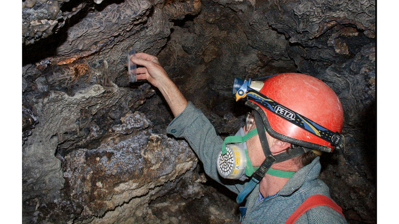 وتُظهر الصور أجزاءً من هذه الشبكة الهائلة متشبثة على جدار بما يشبه ستارة مخملية سوداء ثقيلة، في أعماق الكهف على الحدود اليونانية الألبانية، على مرأى من أحد العلماء المزود بتجهيزات أشبه بما يحمله عادة علماء الكهوف.