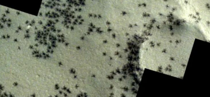 التقطت المركبة الفضائية “مارس إكسبريس” التابعة لوكالة الفضاء الأوروبية صورا جديدة لأشكال صغيرة داكنة تشبه العناكب، تنطلق عبر منطقة المريخ المعروفة باسم مدينة “الإنكا” بالقرب من القطب الجنوبي للكوكب الأحمر.