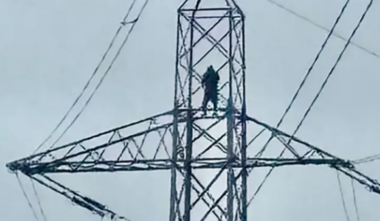 وشاهد شهود عيان الرجل، الذي يُعتقد أنه كان يعاني من مشاكل عاطفية، وهو يتسلق البرج الذي يحمل كابلات الضغط العالي في بريغهاوس، غرب يوركشاير.