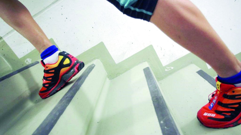 • صعود الدرج يُعدّ مناسباً لكل الأشخاص والأعمار، باستثناء الذين يعانون مشكلات في الركبة.