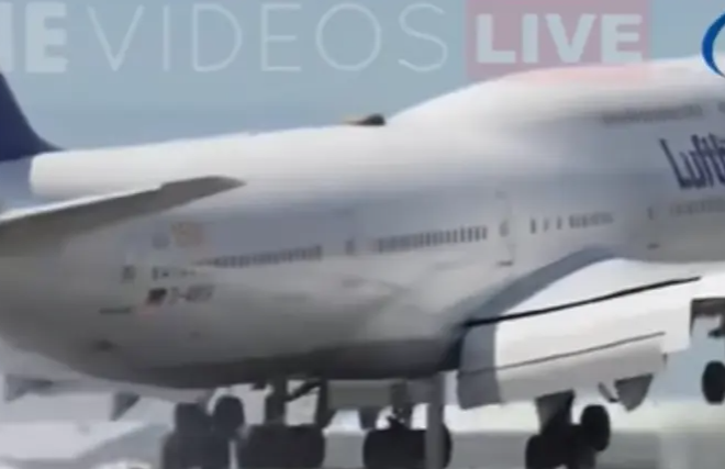 وانتشر على وسائل التواصل الاجتماعي مقطع فيديو لعملية هبوط طائرة مدنية ضخمة قادمة من ألمانيا إلى لوس أنجلوس الأميركية.