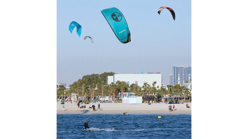 أجواء حافلة بالمغامرة والمرح وركوب الأمواج، يحفل بها «كايت بيتش» في منطقة جميرا بدبي، الذي يُعدّ أحد أشهر الشواطئ الخاصة بممارسة الرياضات المائية المتنوعة، إذ يستقطب عشاق هذه الهوايات، لاسيما في ظل ما يوفره من مرافق وتجهيزات تتميّز بمستوى عصري، تجعل ممارسة رياضة التزلج الشراعي تجربة لا تُنسى، سواء لممارسيها، أو من يستمتعون بمشاهدتها من روّاد هذه الوجهة على ضفاف الخليج.