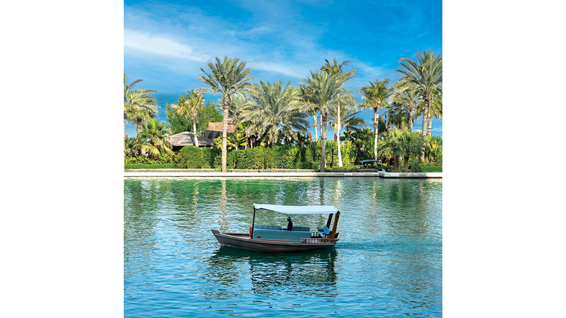 مشهد صباحي شتوي من دبي، في إحدى بقاعها الساحرة، حيث يكتسي المنظر باللون الأخضر، وظلال النخيل، وزُرقة السماء الصافية، التي تقابلها زُرقة الماء في هذه الواجهة البحرية الجميلة، وعلى التيار الهادئ قارب يشبه عبرات المدينة.. دبي التي تبهر ضيوفها دوماً بمعالم فاخرة، وفضاءات يحلو فيها الانطلاق، والاستمتاع بالهواء الطلق، وسط الماء والخضرة ووجوه الحسن، كما هي الحال هنا في فندق جميرا مينا السلام.