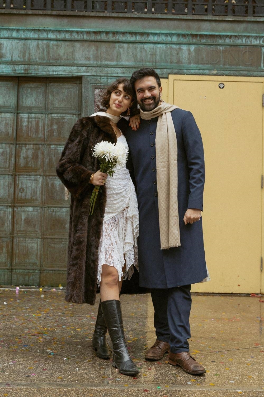وبعد الاحتفال في دبي في ديسمبر الماضي، تزوجا في حفل بسيط في محكمة مانهاتن السفلى في فبراير، والتقطا الصور على الأرائك الخضراء في مكتب الزواج.