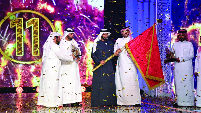 توج سمو الشيخ نهيان بن زايد آل نهيان، رئيس مجلس أمناء مؤسسة زايد بن سلطان آل نهيان للأعمال الخيرية والإنسانية، الشاعر السعودي محمد آل مداوي الوادعي ببيرق الشعر في الأمسية الختامية من الموسم الـ11 لبرنامج «شاعر المليون»، وقدمها الإعلاميان سعود الكعبي وميثا صباح.
