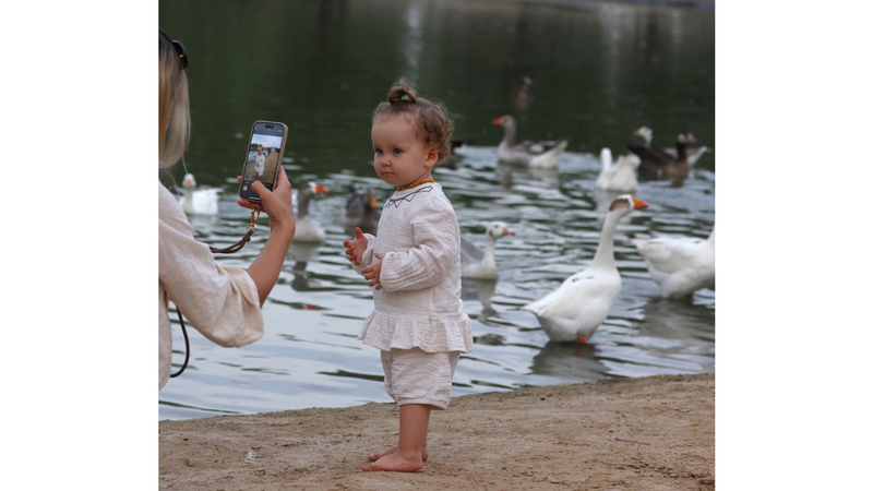 «وردة» في مقتبل العمر، بهدوء البنات وطيبتهن، تقف بردائها الأبيض الأنيق كي تلتقط لها الأم ألبوم صور على ضفاف بحيرات القدرة في دبي، برفقة كائنات أخرى وادعة جميلة، تكمل المشهد، وترفرف حولها، وترسم لوحة البراءة والبياض الناصع الذي يطل من الماء ومن كل الأرجاء، في هذه المساحة التي تقصدها العائلات الباحثة عن متنفس، من أجل الاستجمام بين أحضان الطبيعة، بعيداً عن الصخب والزحام.