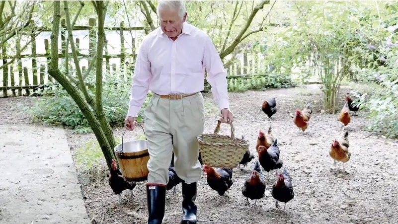 4 في مقره الريفي المفضّل، قصر هايغروف، وضع الملك تشارلز لمساته الخاصة على جنّته العضويّة. هناك تمتدّ على مساحات شاسعة حدائق الزراعات العضويّة من خضار وفاكهة، وهناك أيضاً تعدو الدجاجات التي يربيها ويأكل من بيضها حصراً.