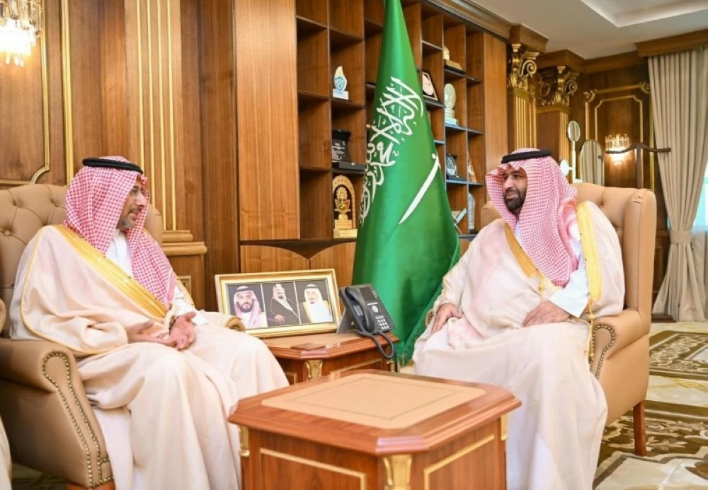 The Governor of Jazan Region, Prince Mohammed bin Abdulaziz bin Mohammed bin Abdulaziz, met today (Thursday) in his office at the emirate with the Minister of Industry and Mineral Resources, Bandar bin Ibrahim Al-Khorayef, the CEO of the Royal Commission for Jubail and Yanbu, Engineer Khalid Al-Salem, and a number of leaders from the industry and mineral resources sector.