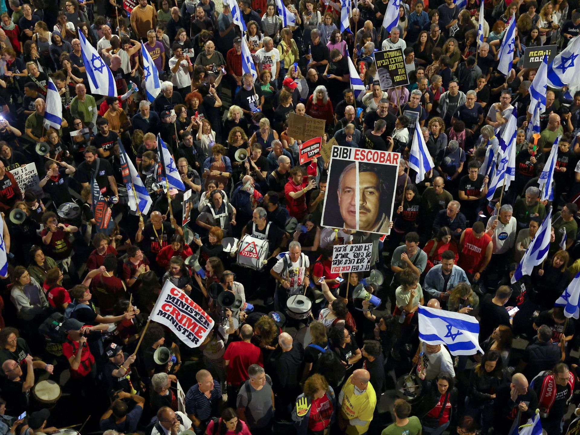 ودعا المتظاهرون إلى تنحي نتنياهو عن منصبه قائلين إنه فشل في إدارة الحرب وفي استعادة المحتجزين، وإنه لا يمكن أن يبقى على رأس السلطة.