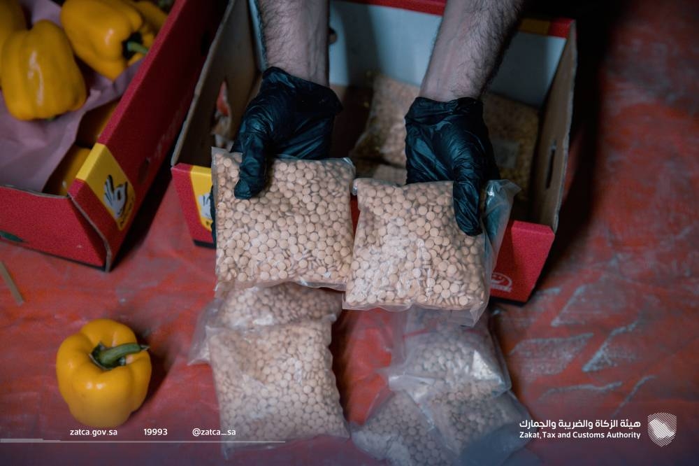 وأوضحت الهيئة أنه وردت إرسالية عبر ميناء ضباء، عبارة عن «فلفل وجوافة» محمولة على إحدى الشاحنات القادمة، وعند خضوعها للإجراءات الجمركية، والكشف عليها عبر التقنيات الأمنية، والوسائل الحية، عُثر على (1,006,518) حبة كبتاجون مُخبأة ضمن الإرسالية.