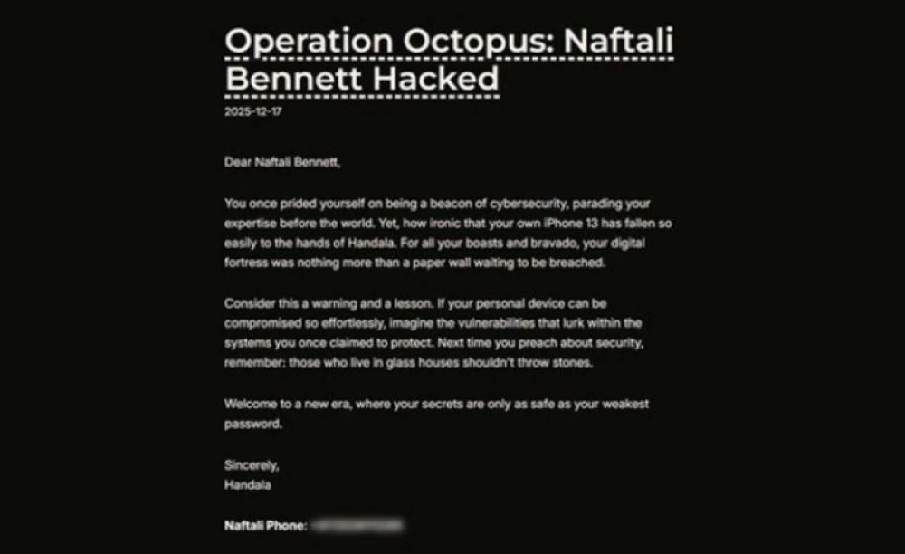 This development brings back to the forefront the record of the “Hanthal” group, which had previously claimed to hack Naftali Bennett’s phone, threatening at that time to publish contacts, messages, and personal photos of prominent political and security figures, before Bennett’s office denied the validity of those claims after technical examinations.