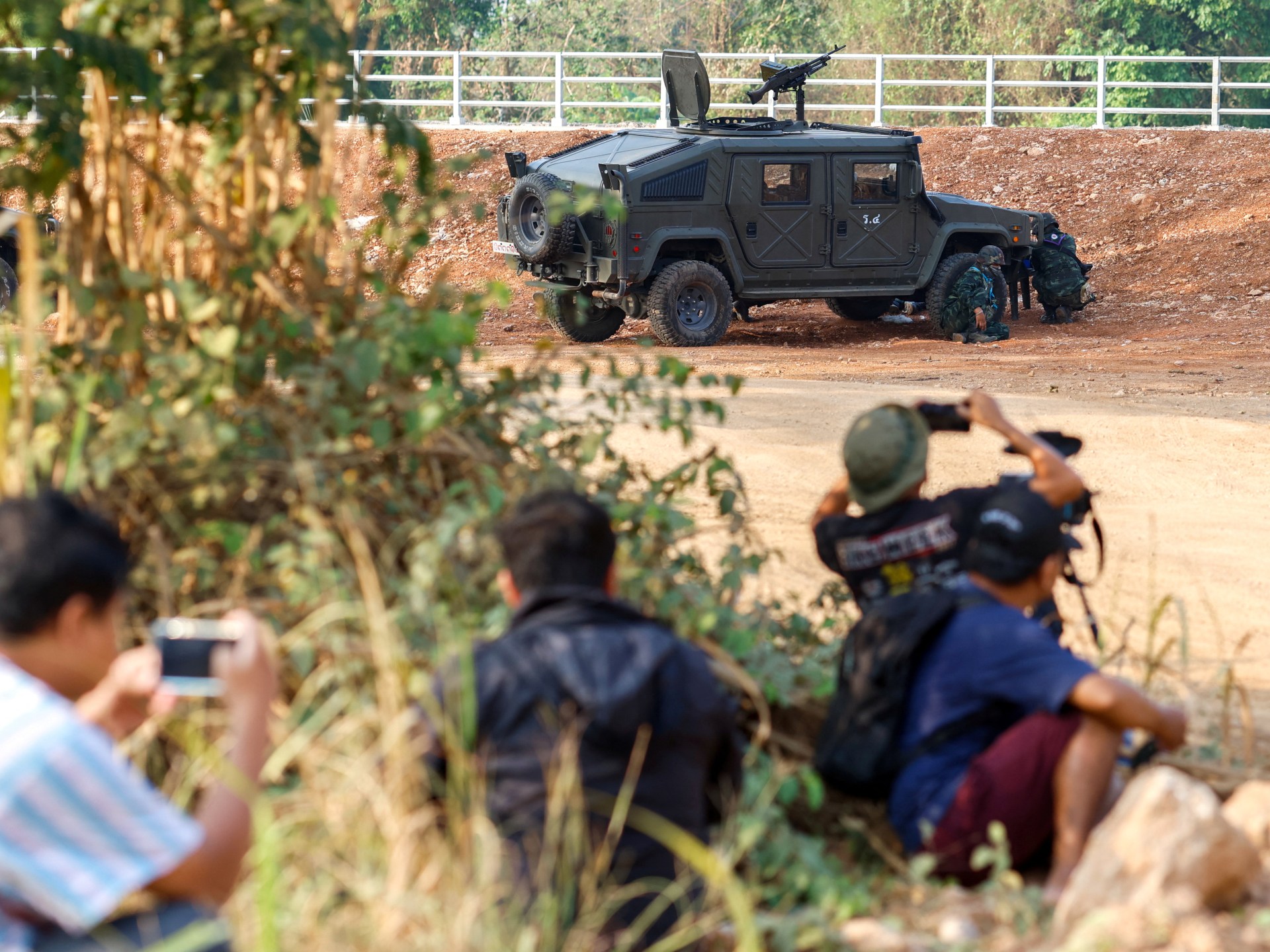 كما أفاد شهود على جانبي الحدود التايلاندية وميانمار بأنهم سمعوا انفجارات ونيران رشاشات ثقيلة بالقرب من جسر إستراتيجي تتحصن عنده قوات ميانمار في وقت متأخر من يوم الجمعة، واستمر حتى وقت مبكر من يوم السبت.