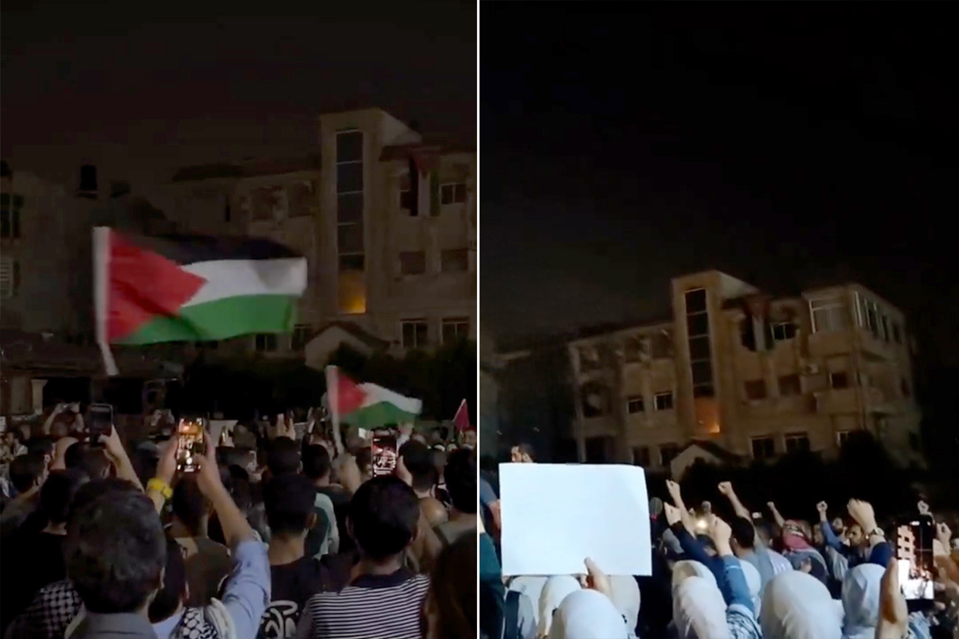 وتداول ناشطون مقاطع فيديو تظهر تجمع العشرات من المواطنين الأردنيين بالقرب من السفارة الإسرائيلية في العاصمة الأردنية عمان، تلبية لدعوة “أبو عبيدة”، مرددين “الملثم صرح وقال الأردن منا وإحنا منه تسلم يا سيد الرجال صوتك والله ما في منه مين قال الشعب مات هيو بيهتف بالساحات”.