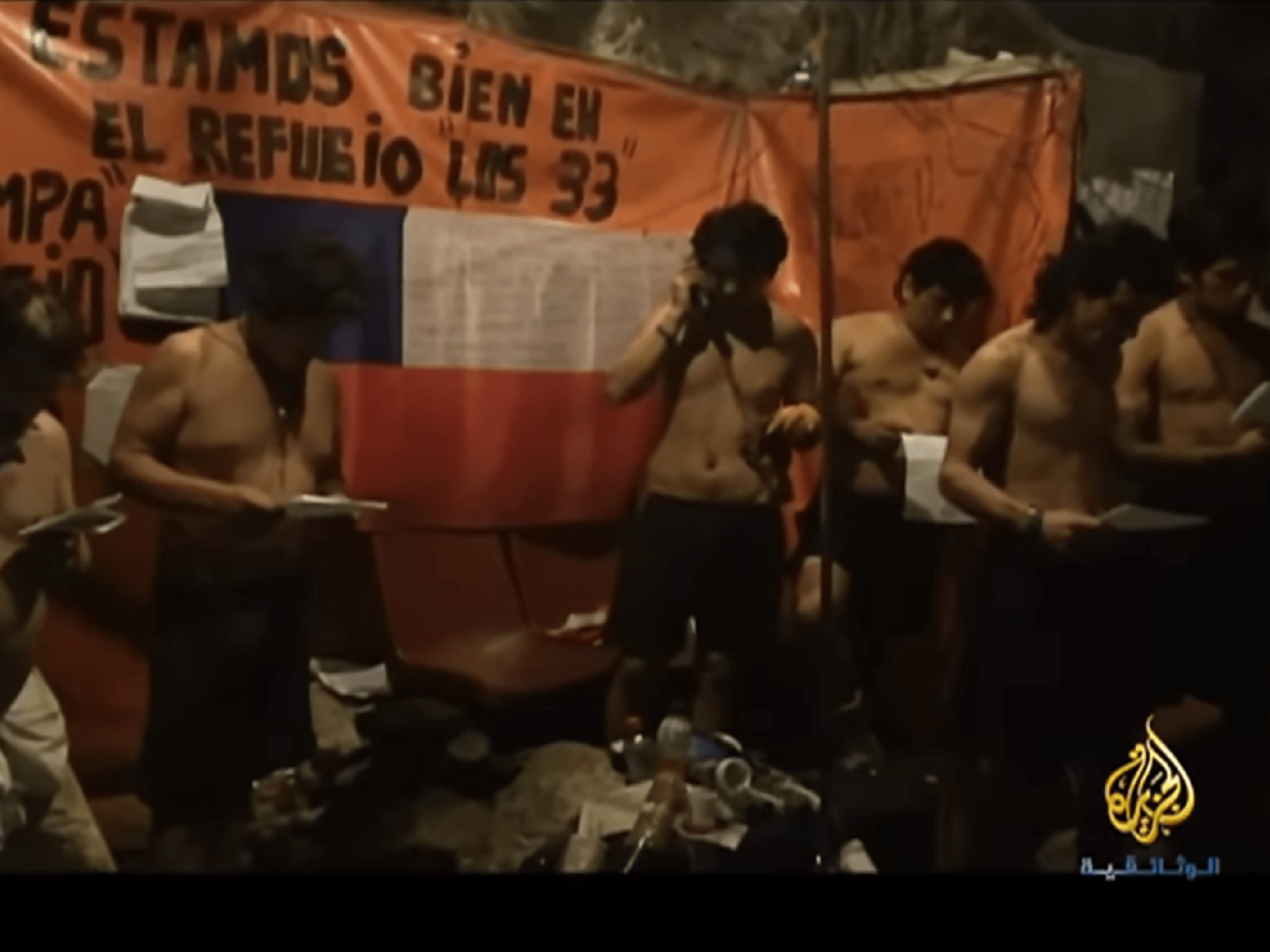 وقد عرضت الجزيرة الوثائقية ذلك في فيلم “الخروج من الحفرة.. القصة غير المروية”، وهو يروي حكاية عمال تشيلي الذين دفنوا تحت الأرض في حفرة بعمق 700 متر، بعيدين 5 كيلومترات عن مدخل المنجم.