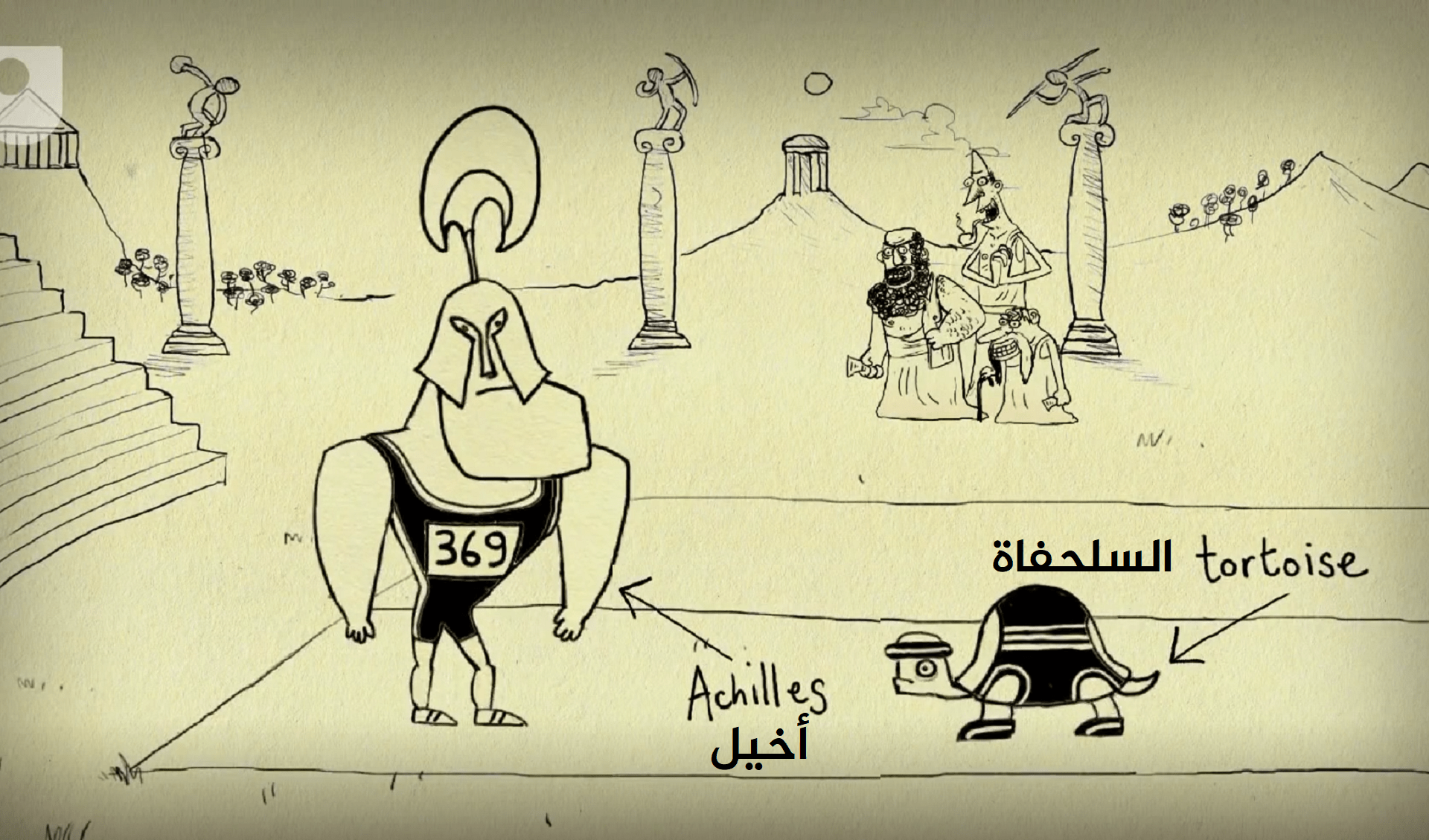 وستتكرر هذه العملية إلى ما لا نهاية، ففي كلّ مرة يصل فيها أخيل إلى النقطة التي كانت فيها السلحفاة، ستكون السلحفاة قد تحركت للأمام قليلا، وعلى هذا الحال فلن يمسك أخيل بالسلحفاة أبدا، مع أنّه أسرع منها بمراحل.2