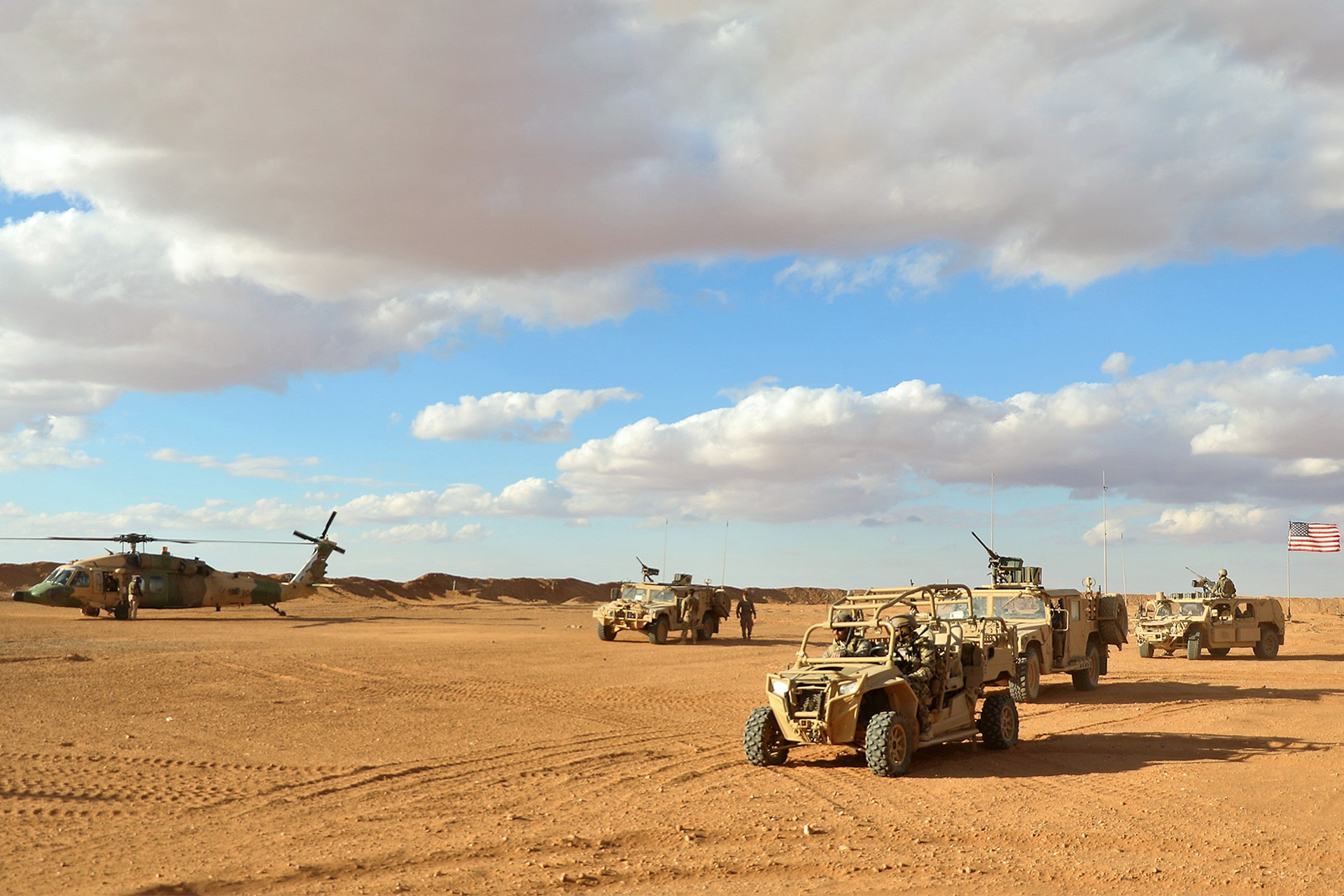 ويتمركز نحو 2500 جندي أميركي في العراق ونحو 900 جندي بسوريا في عدد من القواعد العسكرية في إطار الجهود المبذولة لمحاربة تنظيمات مسلحة في مقدمتها تنظيم الدولة الإسلامية.
