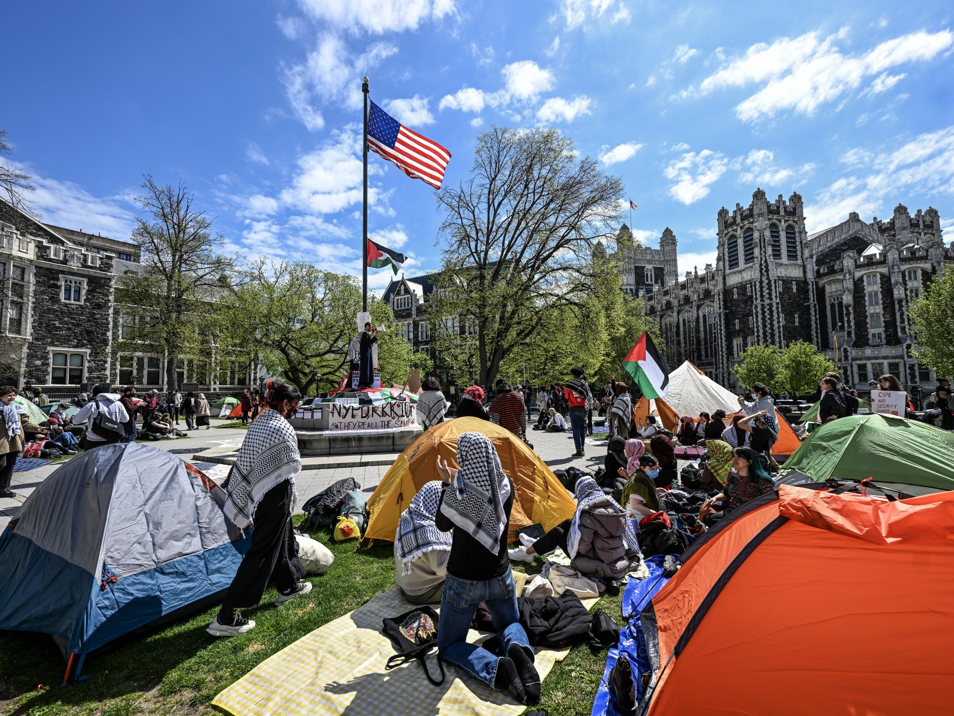 يأتي ذلك فيما بدأ صباح الخميس مئات الطلاب بالتجمع في حرمي جامعتي جورج تاون وجورج واشنطن بالعاصمة الأميركية واشنطن، في امتداد للاحتجاجات المتواصلة بجامعة كولومبيا.