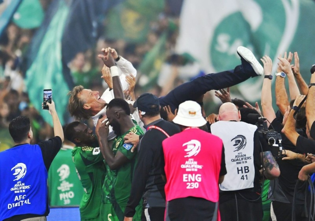 قدم هيرفي رينارد مدرب المنتخب السعودي التهنئة بالتأهل لوزير الرياضة واتحاد القدم السعودي برئاسة ياسر المسحل، مقدماً شكره لعائلته التي دعمته كثيراً وللإعلاميين كافة على العودة من جديد لقيادة المنتخب السعودي.