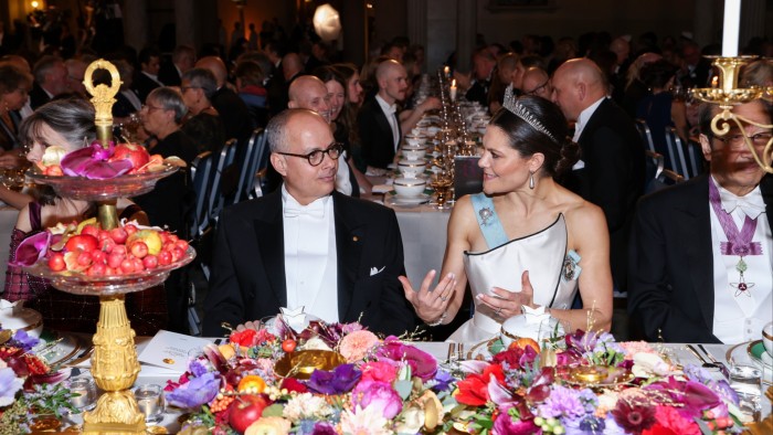 وقد اعترفت رئيسة مجلس إدارة مؤسسة نوبل، أستريد سودربيرج ويدنج، بهذه الظروف المضطربة في كلمتها الافتتاحية في الحفل. وقالت أمام جمهور من بينهم ملك السويد كارل السادس عشر غوستاف: “مع التطورات السريعة التي لا يمكن التنبؤ بها والمتناقضة والمتشابكة، قد يبدو من الصعب بث الثقة في المستقبل”. “في هذا العالم، يعد إرث ألفريد نوبل الحالم بمثابة تذكير قوي بالقوى التحويلية للعلم والأدب والسلام.”