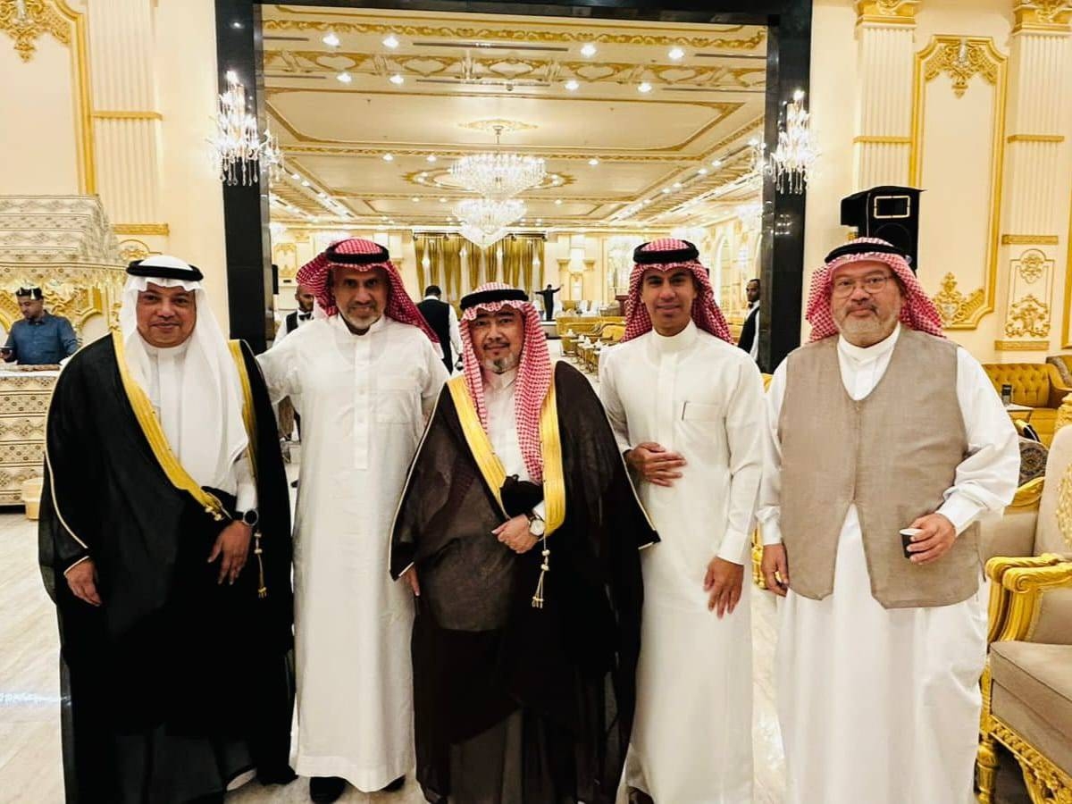 العريس بين أقاربه في الحفل. (عكاظ)
