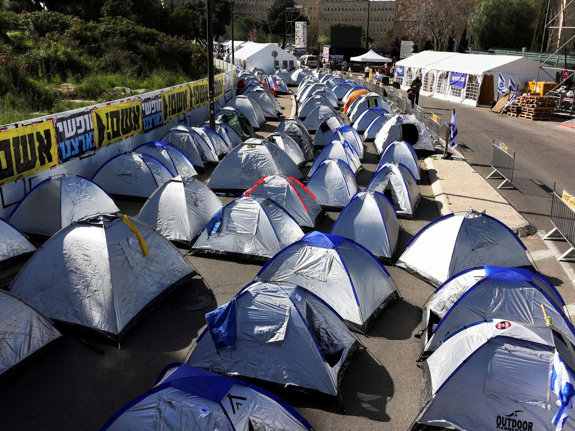 وتشهد مدينة القدس منذ 3 أيام احتجاجات حاشدة تطالب بتنحي حكومة نتنياهو، وإجراء انتخابات مبكرة، وإبرام اتفاق مع حركة المقاومة الإسلامية (حماس) لإعادة الأسرى الإسرائيليين من قطاع غزة.