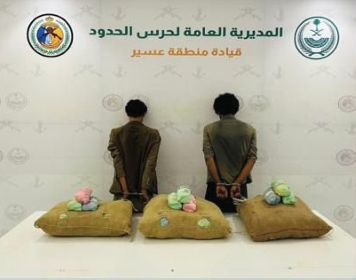 قبضت الدوريات البرية لحرس الحدود في قطاع الربوعة بمنطقة عسير، على مخالفين لنظام أمن الحدود من الجنسية اليمنية، لتهريبهما (66) كيلوجرامًا من نبات القات المخدر، واستكملت بحقهما الإجراءات النظامية الأولية وتسليمهما والمضبوطات لجهة الاختصاص.