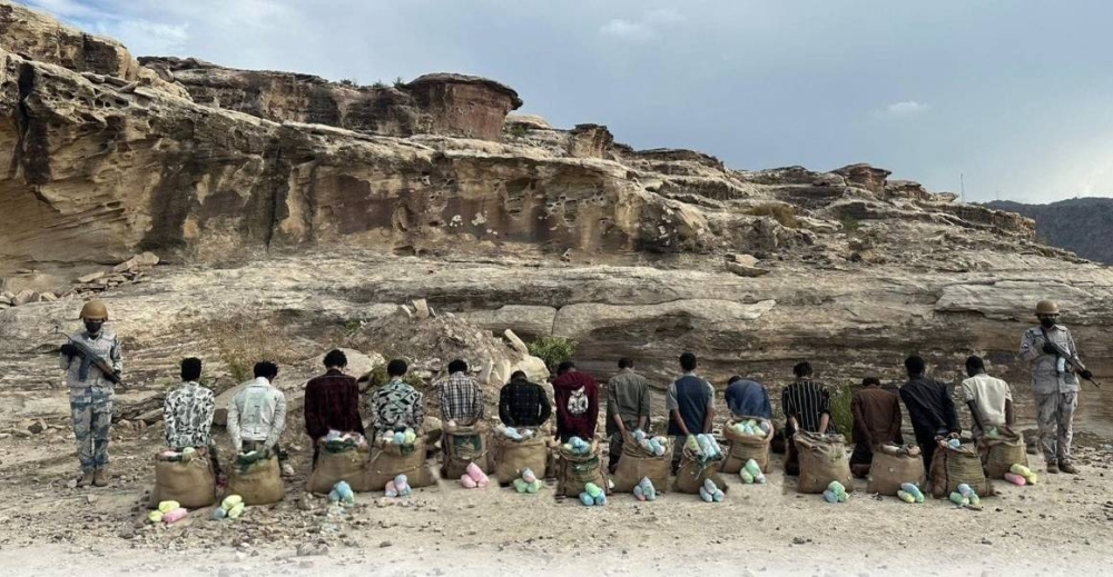 قبضت الدوريات البرية لحرس الحدود في قطاع الربوعة بمنطقة عسير على (14) مخالفًا لنظام أمن الحدود من الجنسية الإثيوبية، لتهريبهم (315) كيلوجرامًا من نبات القات المخدر، وجرى استكمال الإجراءات النظامية الأولية بحقهم، وتسليمهم والمضبوطات لجهة الاختصاص.