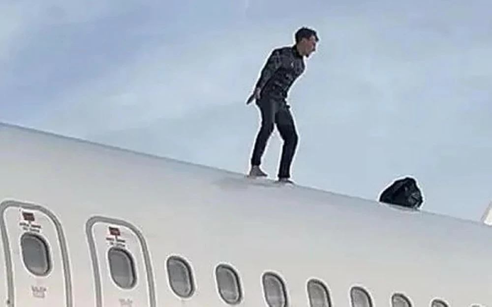 Video clips circulating online showed the man standing on top of the aircraft in front of passengers inside the airport terminal, where he appeared to be shouting and performing theatrical gestures, placing his hands on his chest in a manner that seemed provocative towards the workers below.