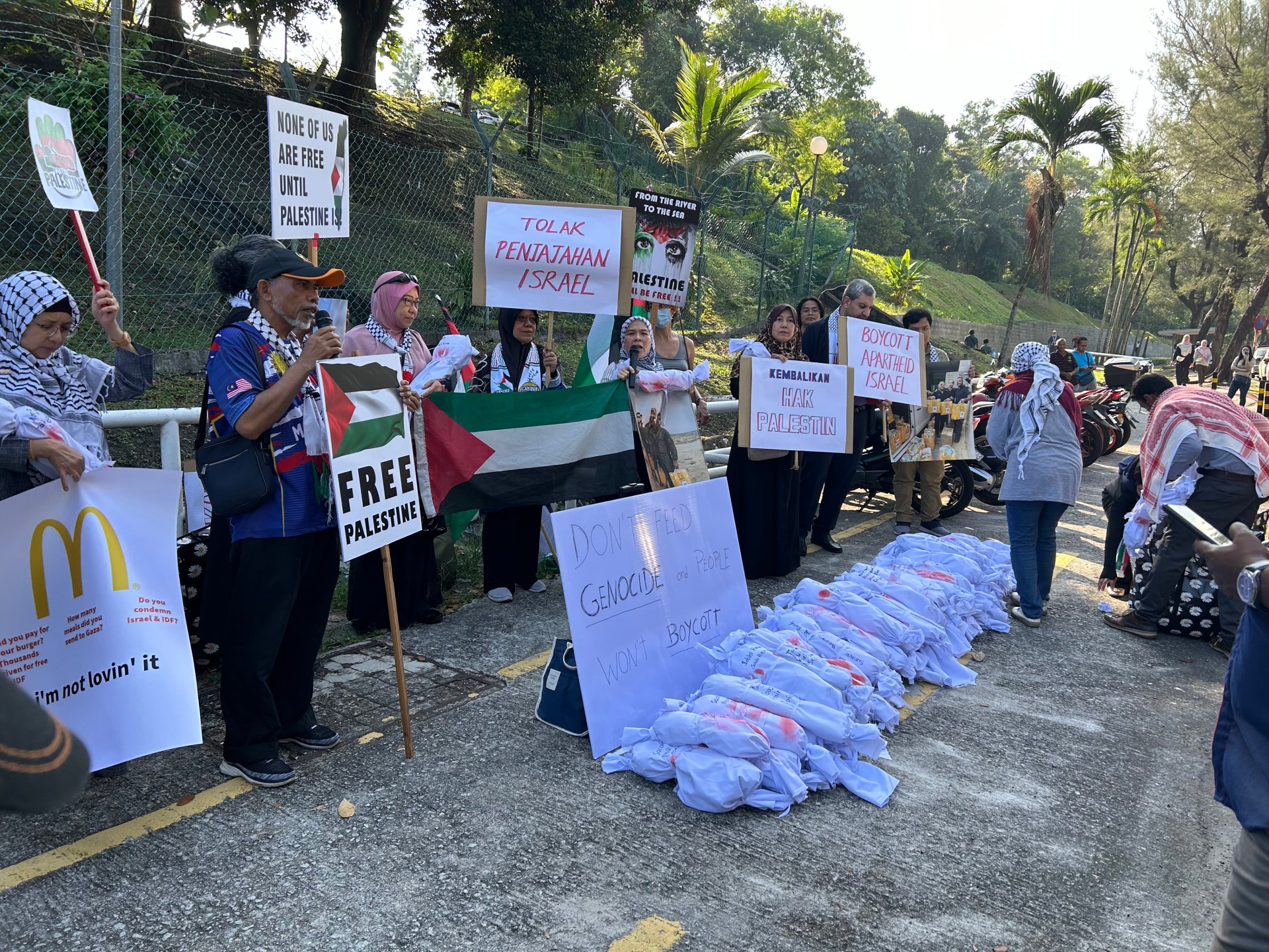 وفي وقت سابق، ظهرت صور ومقاطع فيديو على وسائل التواصل توزيع ماكدونالدز وجبات مجانية على جنود إسرائيليين يعتقد أنهم يحاربون في قطاع غزة، بينما قالت ماكدونالدز ماليزيا إنها لا علاقة لها بفرع الشركة في إسرائيل.