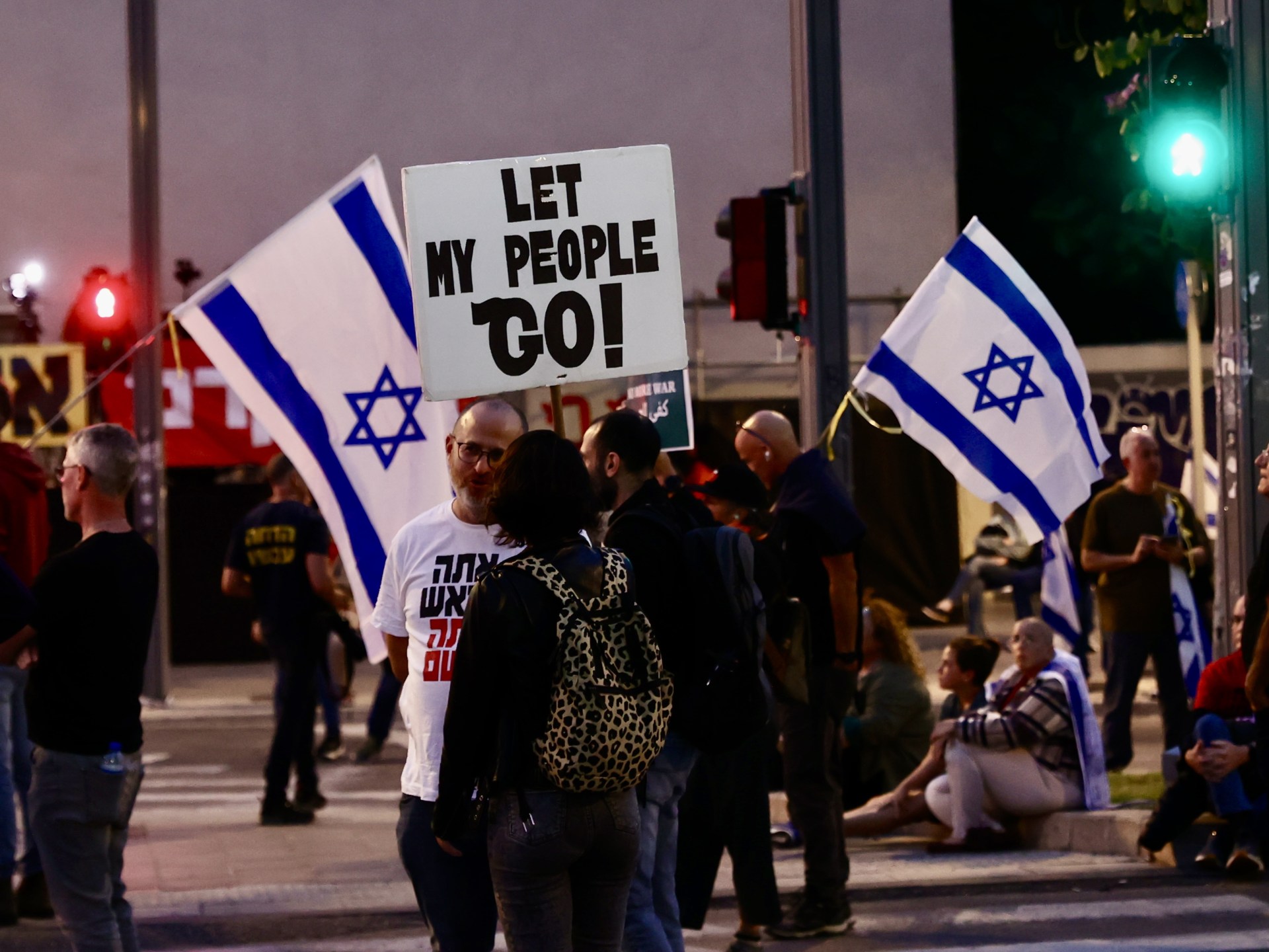 ويوميا، يتظاهر إسرائيليون في عدة مناطق للضغط على حكومة نتنياهو من أجل إبرام صفقة تبادل أسرى مع الفصائل الفلسطينية بغزة، تؤدي إلى الإفراج عن الأسرى المحتجزين في القطاع.