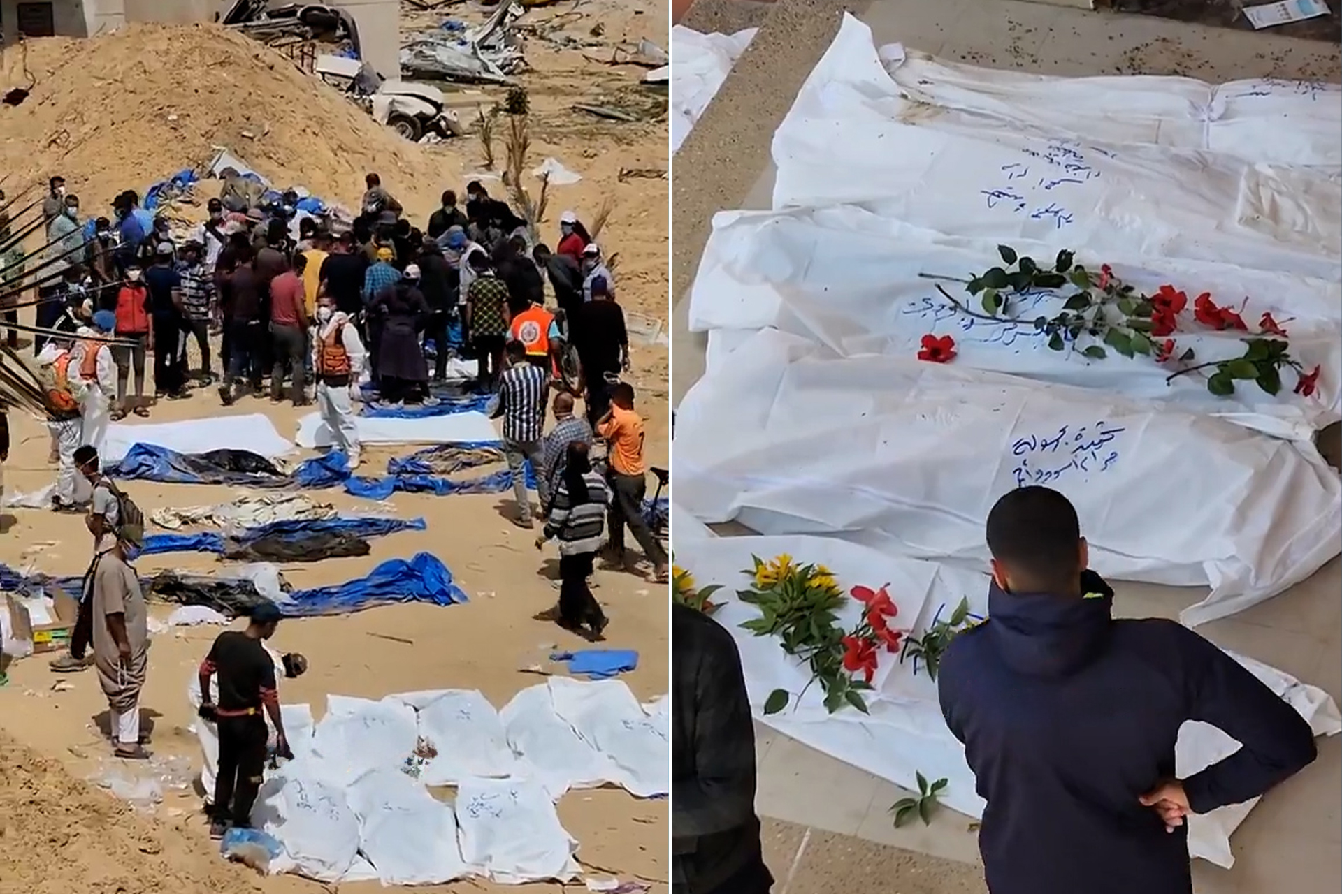 ومنذ إعلان اكتشاف مقابر جماعية بساحة مجمع مستشفى ناصر الطبي بخان يونس، بعد انسحاب قوات الاحتلال الإسرائيلي من المنطقة، تداول مستخدمو وسائل التواصل الاجتماعي صورا وفيديوهات تظهر انتشال جثامين الشهداء، وكانت الصور قاسية، لجثث متحللة ومقطوعة الأطراف وأخرى قيل إنه تمت سرقة أعضائها من قبل جيش الاحتلال قبل أن يقوم بدفنها.