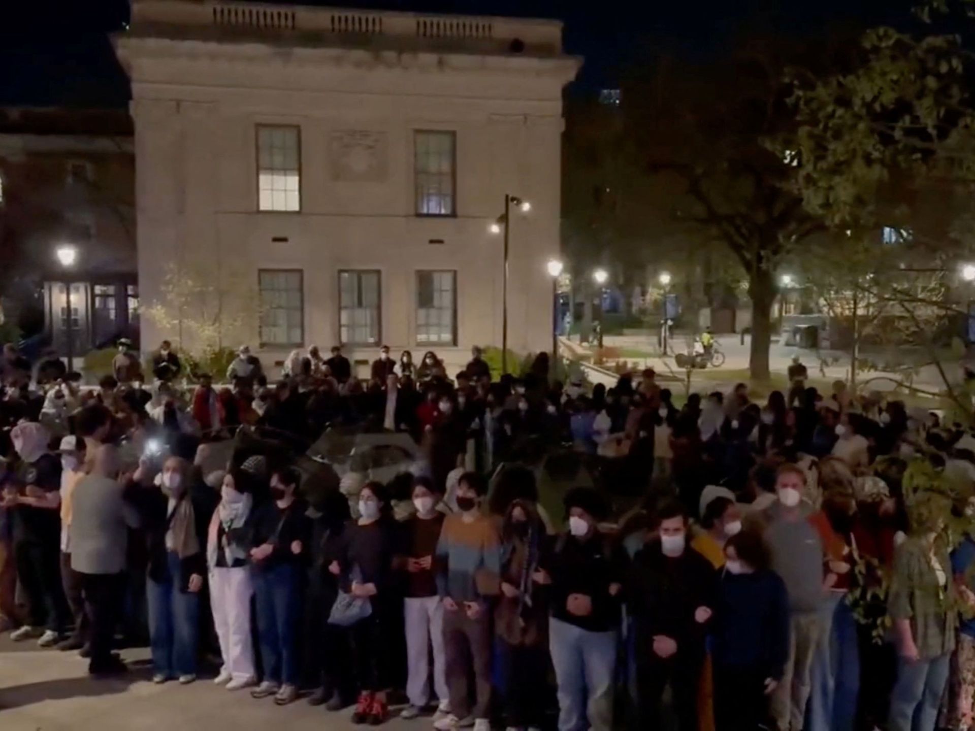 وقد نصب المحتجون مخيمات قرب حرم الجامعة عند الثامنة مساء، لكنهم تركوا المكان عند الساعة الـ11 بعد تهديدات من الإدارة باتخاذ إجراءات ضدهم، وفق ما نقلت مواقع إخبارية أميركية.