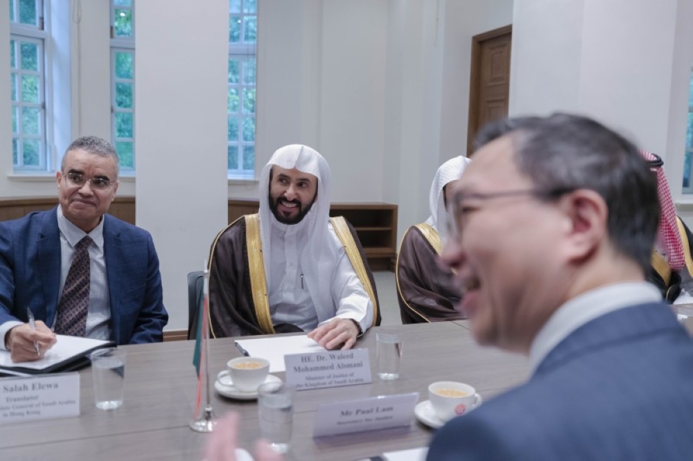 وبحث مع نظيره في هونغ كونغ، سُبل تعزيز العلاقات بين البلدين، في المجالين العدلي والقضائي؛ بما يحقق العدالة الناجزة ويعزز الحقوق.