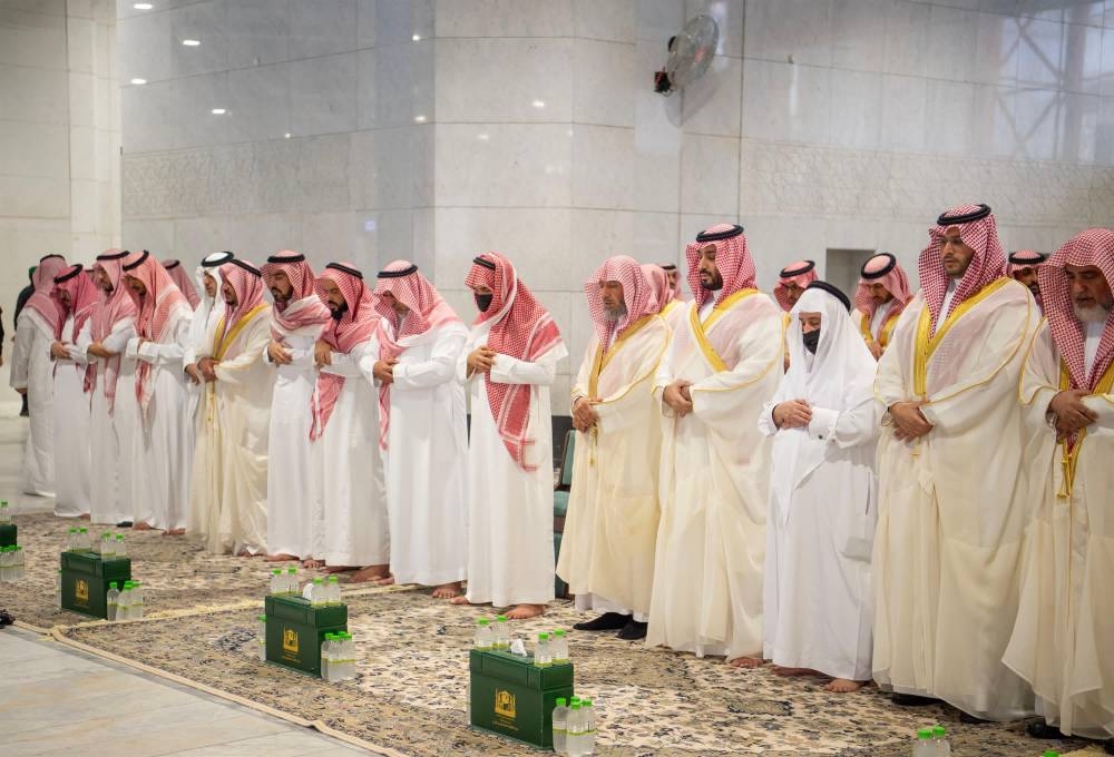كما أدى الصلاة مع ولي العهد وزير الدولة عضو مجلس الوزراء الشيخ صالح بن عبدالعزيز آل الشيخ، وعضو هيئة كبار العلماء المستشار بالديوان الملكي الشيخ الدكتور سعد بن ناصر الشثري، وأصحاب الفضيلة العلماء والمعالي وكبار المسؤولين وجموع المصلين في المسجد الحرام.